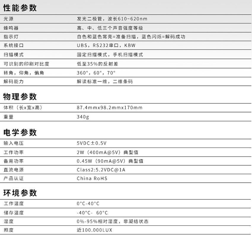 Honeywell霍尼韋爾 HF600二維碼支付寶掃描器/產(chǎn)品參數(shù)