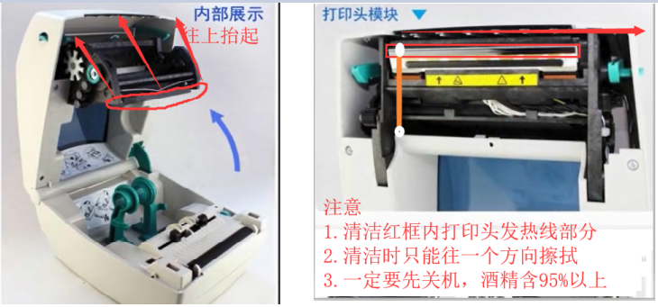 5. 打印大量卷標(biāo)簽后出現(xiàn)打印文字印不清晰,不清晰就會(huì)影響到識別,并且屬于NG標(biāo)簽,針對此問題那么讓我提供斑馬GK888打半張閃紅燈打印機(jī)怎么辦-快速解決教程可給大家方法進(jìn)行處理,打印不清晰原因有3種因素質(zhì):因大量打印標(biāo)簽碳帶熱升華后殘留的碳粉在打印頭發(fā)印字部分導(dǎo)致打印出的文字不清晰,那么我們就用以下方法來進(jìn)行處理,其一.是把打印機(jī)關(guān)機(jī),用95%以上的酒精和棉簽或棉布進(jìn)行清潔打印頭