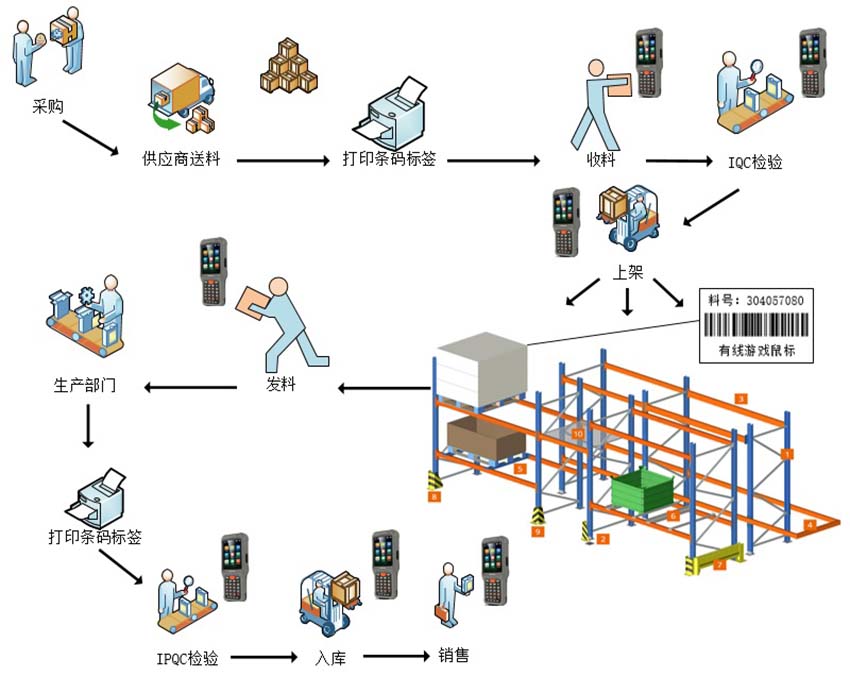 4、本系統(tǒng)串聯(lián)條碼、移動(dòng)設(shè)備、電子看板、ERP,打造從采購、領(lǐng)料、生產(chǎn)、倉儲(chǔ)到發(fā)貨及售后等智能化廠內(nèi)全作業(yè)環(huán)節(jié)。