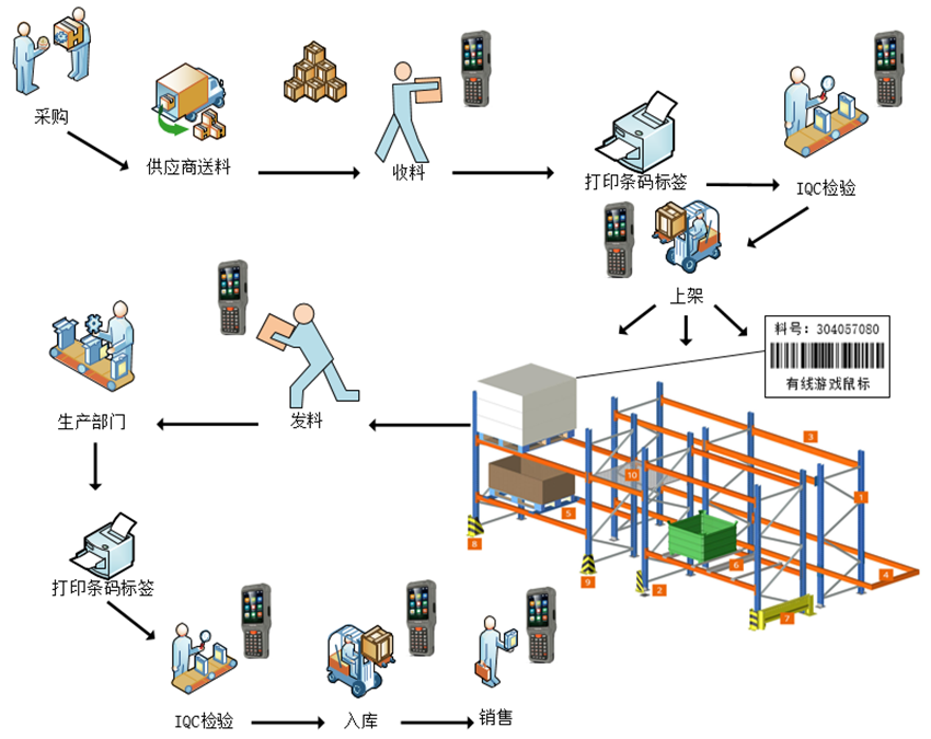 4、本系統(tǒng)串聯(lián)條碼、移動(dòng)設(shè)備、電子看板、ERP,打造從采購、領(lǐng)料、生產(chǎn)、倉儲(chǔ)到發(fā)貨及售后等智能化廠內(nèi)全作業(yè)環(huán)節(jié)。