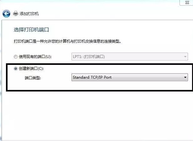 3)選擇“創(chuàng)建新端口”,端口類型改為“TCP/IP”下一步