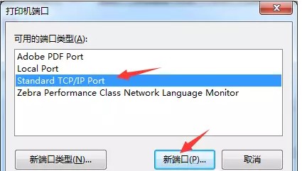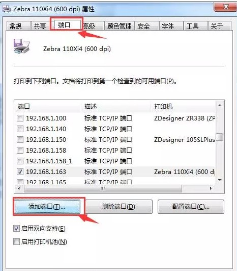 若是沒有對應(yīng)打印機(jī)IP地址的端口則先選擇“添加端口”,如下: