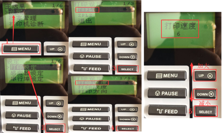 1.6打印機(jī)打印速度設(shè)置操作,如下圖1-5步驟按MENU直到Ready