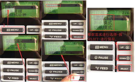 1.9打印機(jī)打印模式設(shè)置操作,如下圖1-5步驟按MENU直到Ready.
