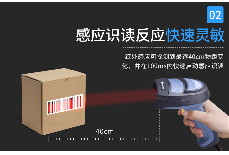 紅外感應(yīng)可探測到*遠(yuǎn)40cm的物距變化,并在100ms內(nèi)快速啟動感應(yīng)識讀