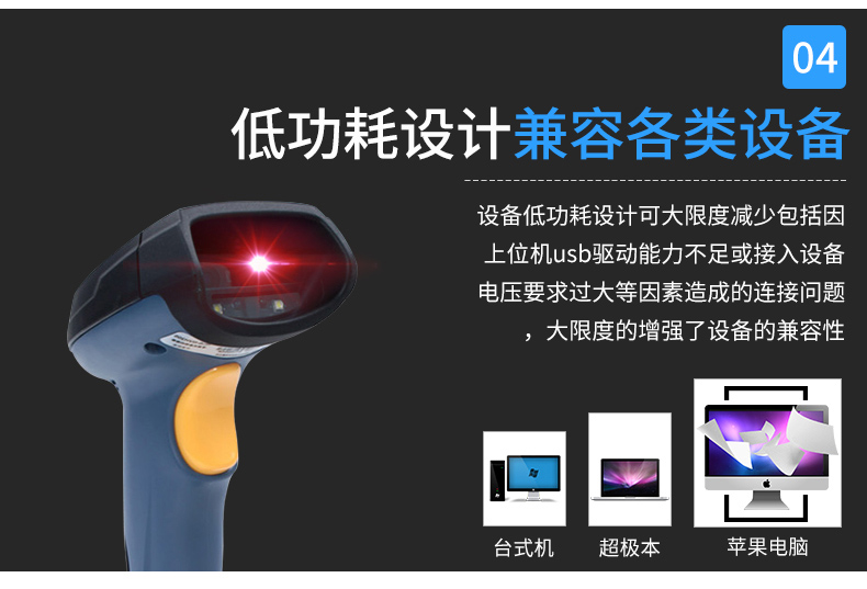 新大陸NLS-HR600低功耗設(shè)計可*大限度減少包括因上位機(jī)USB驅(qū)動能力不足或接入設(shè)備電壓要求過大等因素造成的連接問題,*大限度的增強(qiáng)了設(shè)備的兼容性